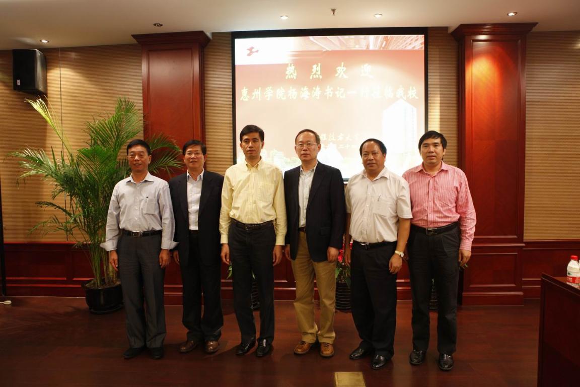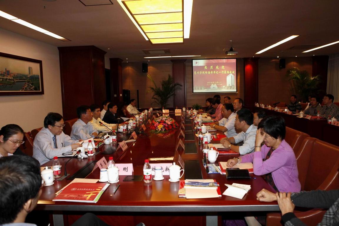 会上,校党委书记滕建勇致欢迎辞。他对惠州学院的首次到访表示了热烈欢迎,并介绍了学校整体情况。副校长陈力华从学校的发展历史、办学定位、办学条件、办学特色等方面对学校进行了全面介绍。惠州学院党委书记杨海涛对我校的热情接待表示了感谢,他高度赞誉了我校优美的校园环境与先进教学实验设施,并希望两校在教学、科研、管理等方面能够开展广泛的交流合作。